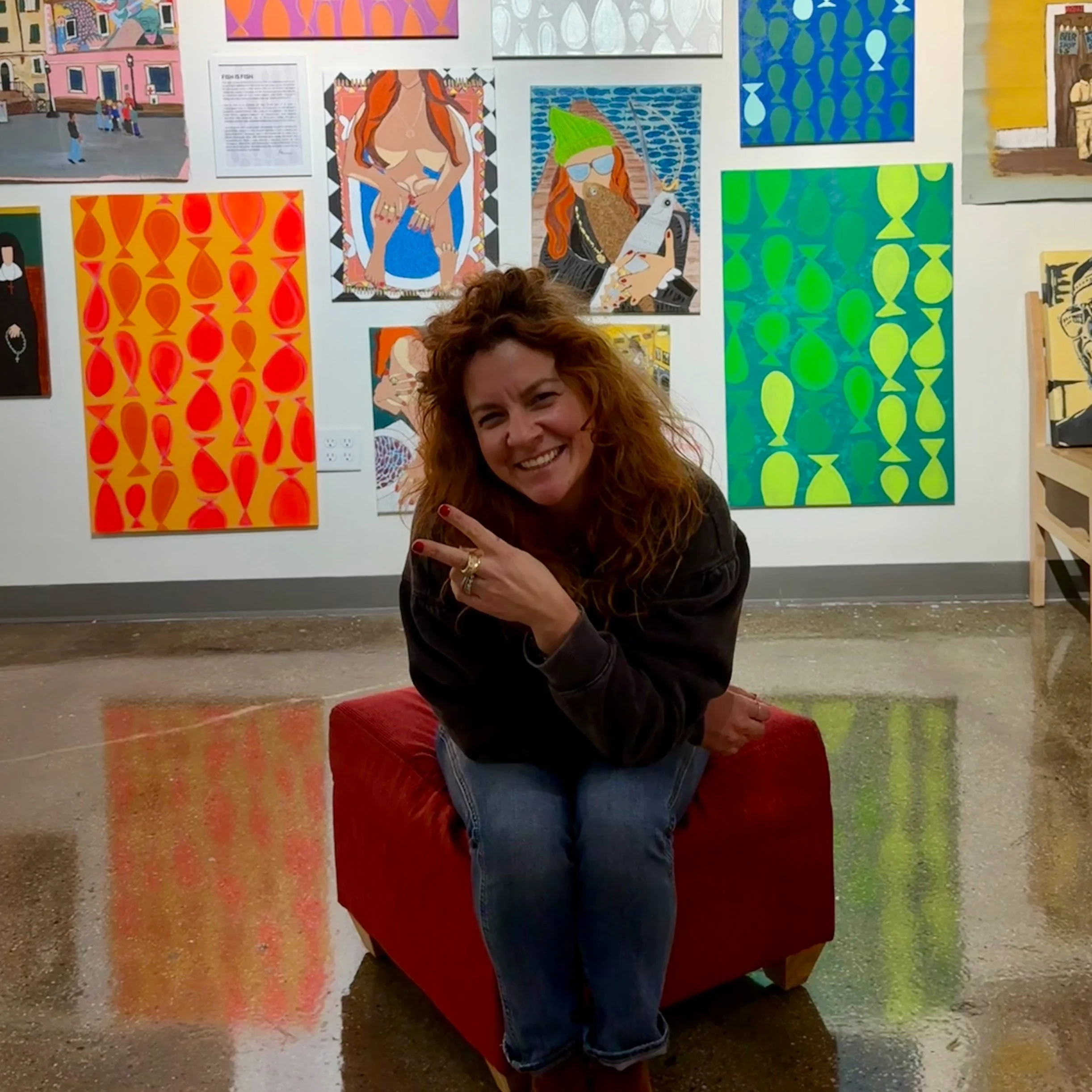 My name is Emily Konopinski, my business is Green Door Studio, I paint and sculpt in bold styles with a focus on fish and birds (lately).
